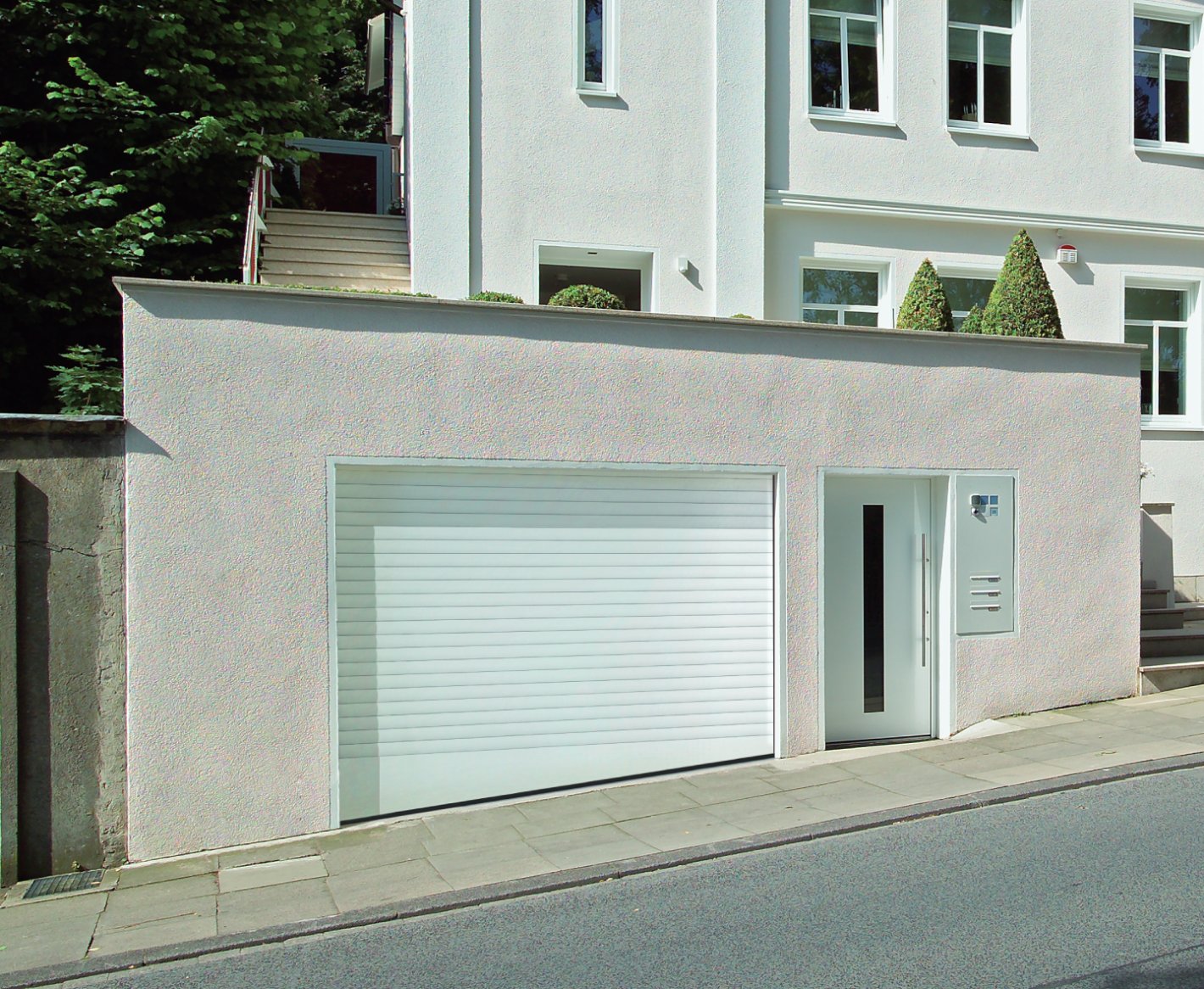 Our compact roller garage door, RollMatic, is the best choice for your home if the ceiling area in the garage is to remain clear and there is also no space for a door leaf at the side.